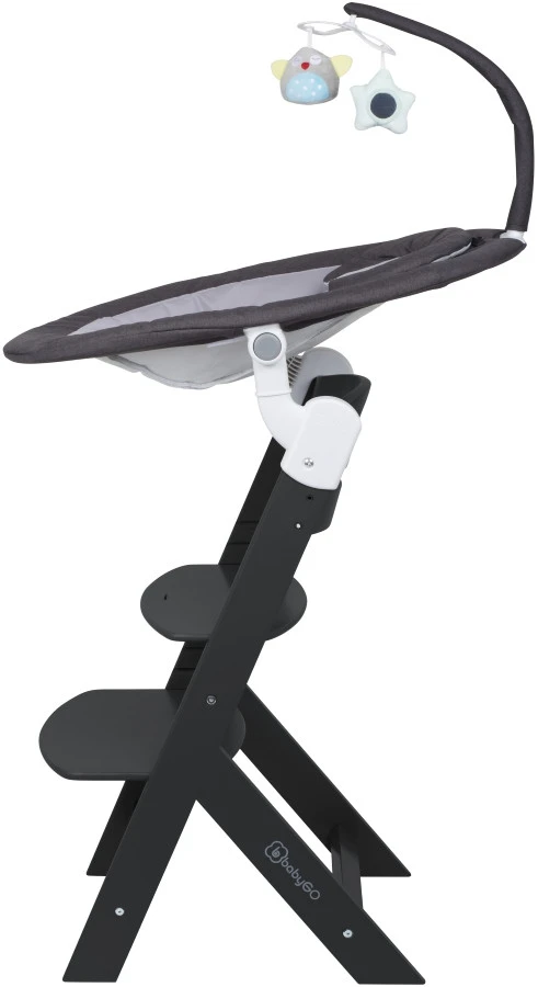 Daarnaast wordt de swing geleverd met een BabyGo Family kinderstoel. De swing is makkelijk op de kinderstoel te bevestigen met de adapters waardoor je je kleine hoger kan zetten om er zo beter bij te kunnen. Van deze kinderstoel is zowel de zitting als de voetensteun in 3 verschillende hoogtes te verstellen zodat er altijd een comfortabele positie voor je kindje te vinden is.