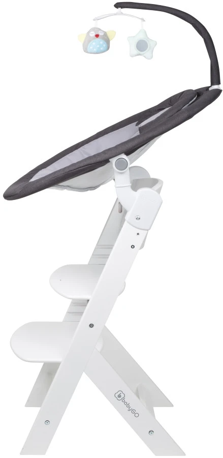 Daarnaast wordt de swing geleverd met een BabyGo Family kinderstoel. De swing is makkelijk op de kinderstoel te bevestigen met de adapters waardoor je je kleine hoger kan zetten om er zo beter bij te kunnen. Van deze kinderstoel is zowel de zitting als de voetensteun in 3 verschillende hoogtes te verstellen zodat er altijd een comfortabele positie voor je kindje te vinden is.