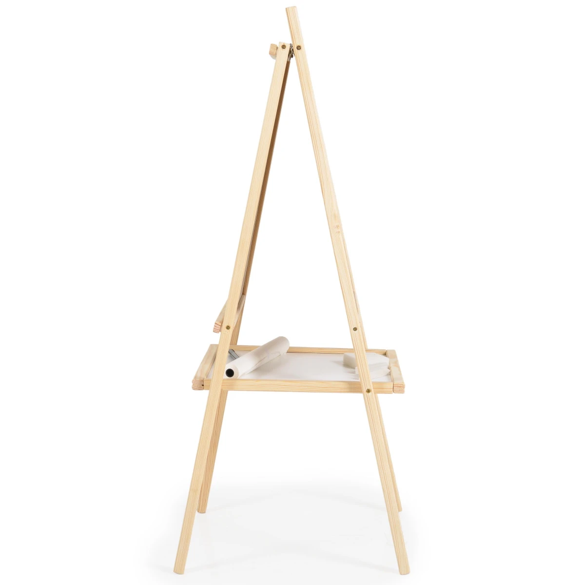 Het tekenbord wordt geleverd met verschillende accessoires zodat jouw kleine kunstenaar gelijk aan de slag kan, zoals een whiteboardstift, een paar krijtjes en een uitveegborstel. Daarnaast wordt er een rol papier meegeleverd die je aan de bovenkant kan bevestigen, zo kan je de mooiste creaties bewaren in plaats van steeds uitvegen! Op het plankje onder het tekenbord is ruimte om de accessoires op te bergen.Â