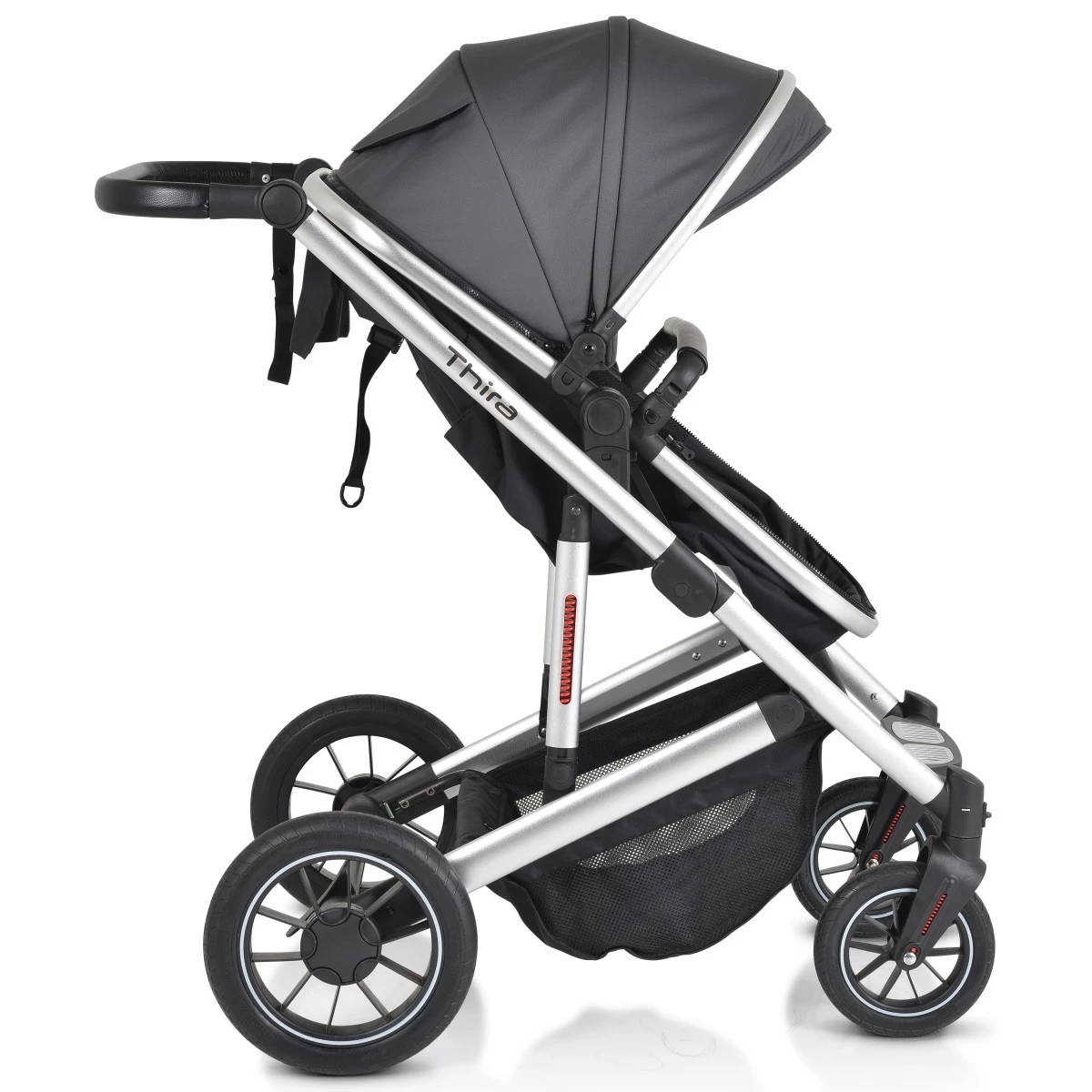 Met de stijlvolle Thira 3-in-1 Kinderwagen van Cangaroo haal je een fijne kinderwagen voor jarenlang gebruik in huis! Het is een ideale wagen zowel voor ouder als kind en is te gebruiken tot dat je kindje wel 4 jaar oud is. Daarnaast heeft de wagen een mooi design met een luxe uitstraling dankzij het zilverkleurige aluminium frame en PU lederen details!