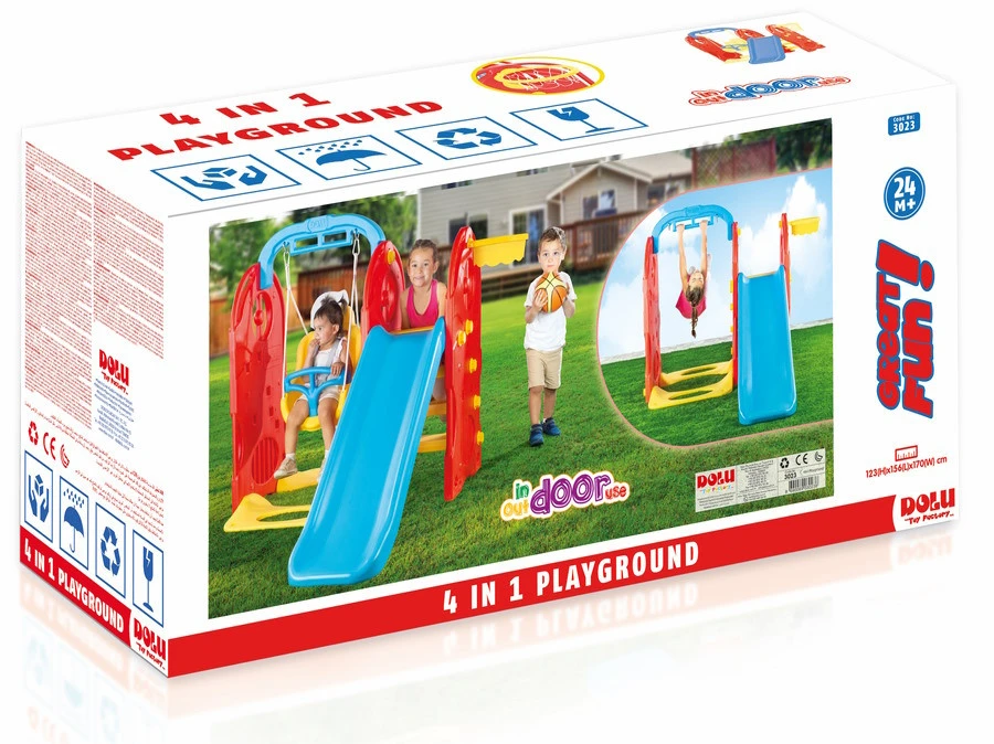 De fun kan niet op met dit gave 4-in-1 speeltoestel. Het speeltoestel is gemaakt van stevig plastic, waardoor het speeltoestel geschikt is voor buiten en binnen!