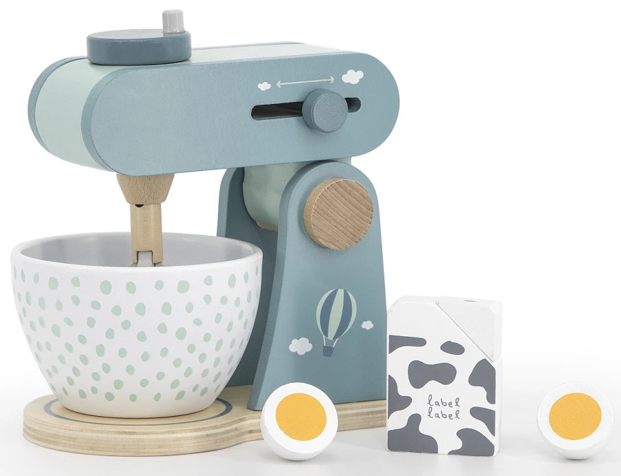 Deze set bestaat uit een mixer, kommetje, pakje melk en een ei. Goede basisingrediënten om een lekkere cake te maken! Deze set is gemaakt van stevig FSC hout en is duurzaam.Â
