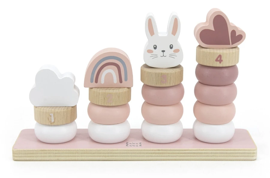 Van stapelen, tellen en sorteren tot fantasierijke verhaaltjes over regenbogen en konijntjes, wat zal je kleintje heerlijk kunnen spelen met deze superleuke houten stapelringen van Label Label!