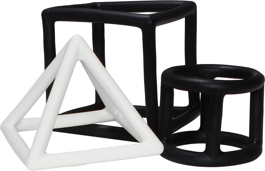 Wat zal je kleine een speelplezier beleven met deze leuke geometrische bijtringen van Label Label! De bijtvormen zijn gemaakt van silicone.
