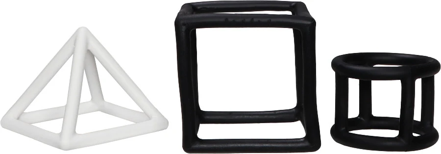 Deze set bestaat uit drie vormen: een piramide, kubus en een cilinder. Ze passen allemaal in elkaar en je klein kan er ook lekker mee gaan stapelen. Geschikt voor kindjes vanaf de geboorte.