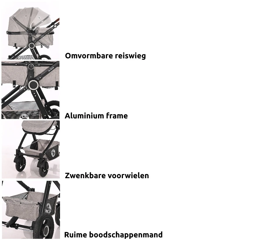 - Reiswieg omvormbaar tot wandelwagenzitje voor latere leeftijd