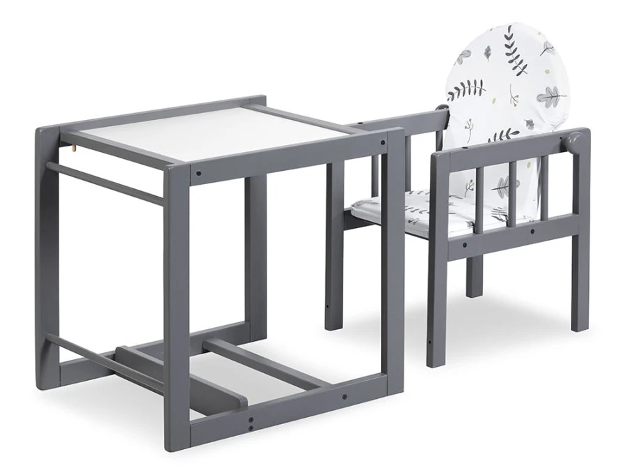 Met de MamaLoes Grijs Lily Kinderstoel kan je kleintje op gelijke hoogte met jou mee-eten. Wanneer je kleintje wat groter wordt, kan de kinderstoel worden omgetoverd tot een eigen eettafel of speeltafel.