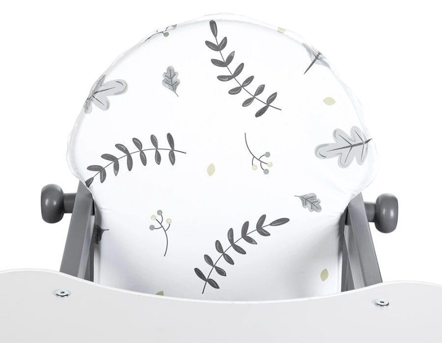 De stabiele kinderstoel kan worden gebruikt als kinderstoel of als los stoeltje met eigen tafeltje. Het stoeltje is voorzien van zachte bekleding met verschillende bladeren als print. Als je kindje knoeit in deze stoel is dat geen probleem! De bekleding kan je gemakkelijk af doen met een vochtige doek. Ook het tafelblad is gemakkelijk schoon te maken.
