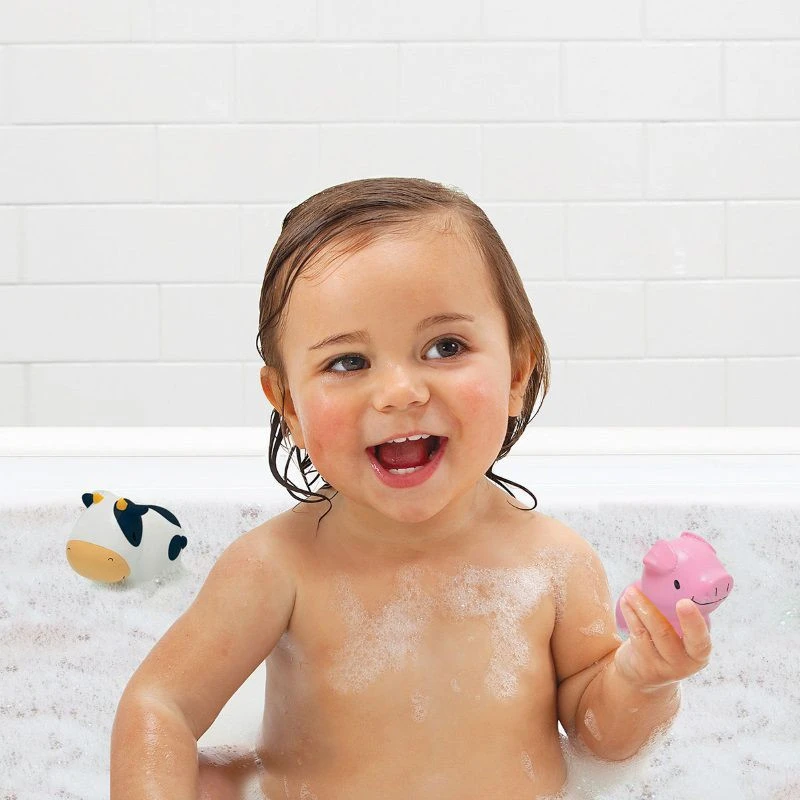 Deze set van 8 grappige dierenvriendjes bevat allerlei leuke diertjes die je op de boerderij tegen kan komen! Het badspeelgoed helpt je kindjes fijne motoriek ontwikkelen terwijl hij de verschillende diertjes leert kennen. De felgekleurde speeltjes drijven, spuiten water en zijn precies groot genoeg voor de kleine handjes.