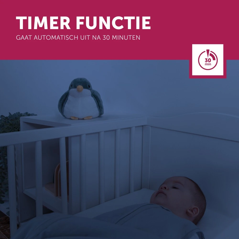 - Keuze uit 3 soorten geluiden: Afrikaanse kalmerende geluiden, hartslag of slaapliedjes